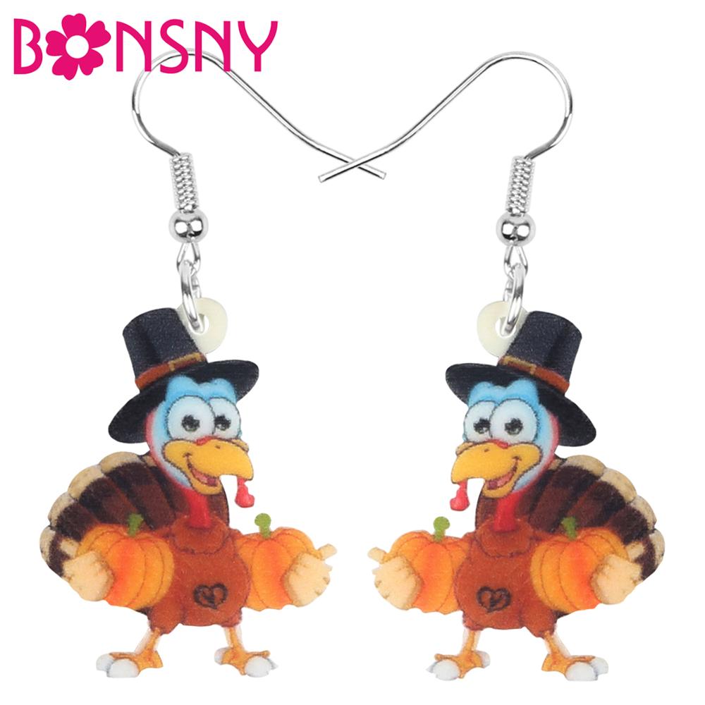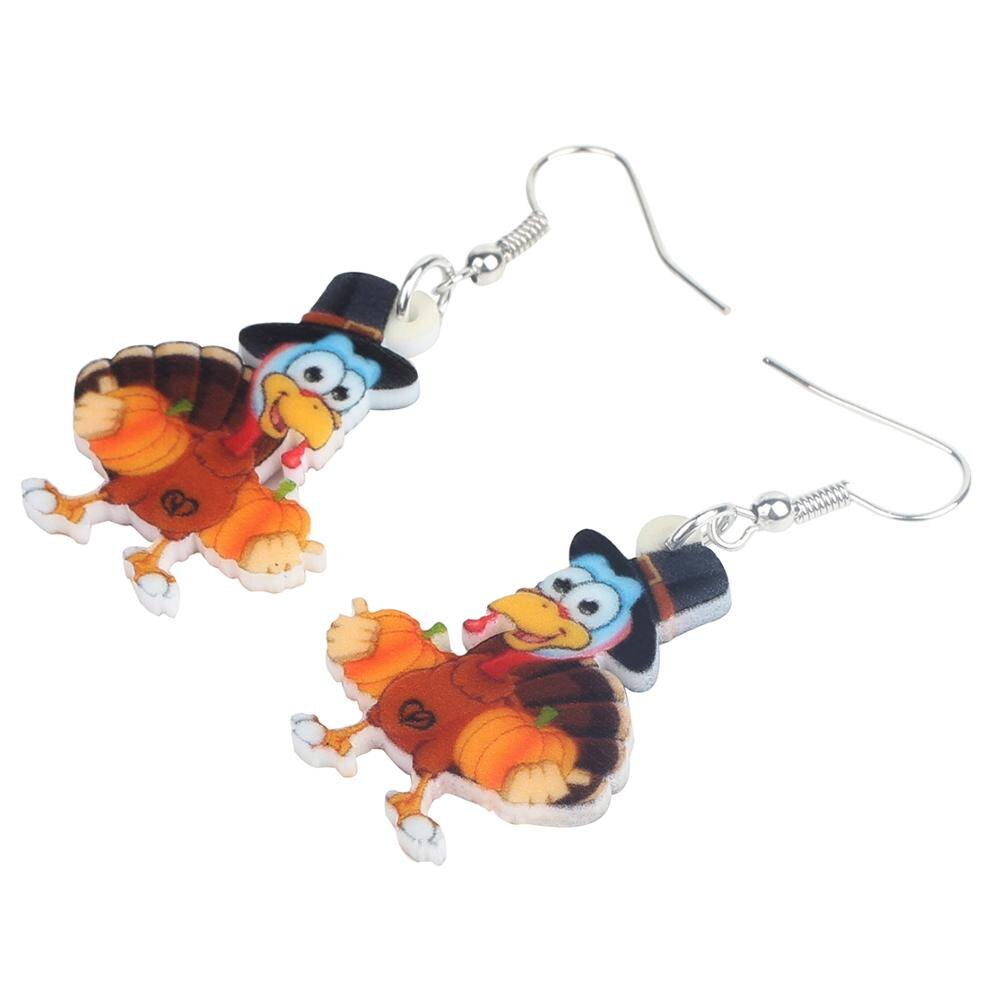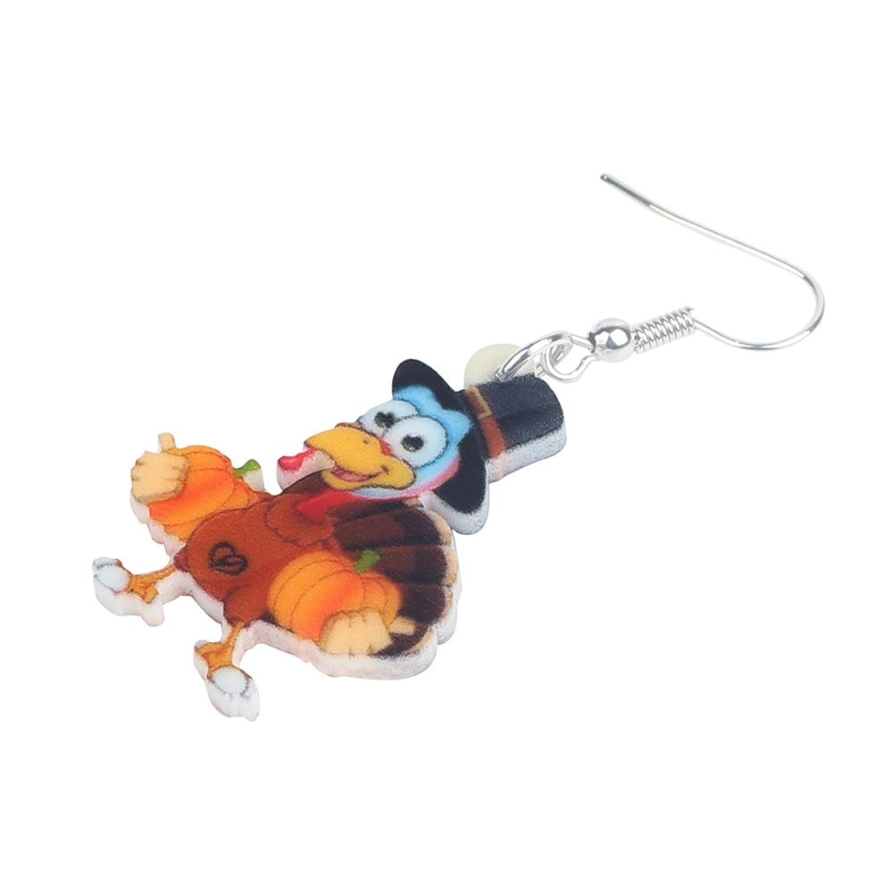 Bonsny Acrylic Thanksgiving Anime Turkey Chicken Pumpkin Earrings Drop Dangle Jewelry For Women Girls Teens Kid Decorations Gift
