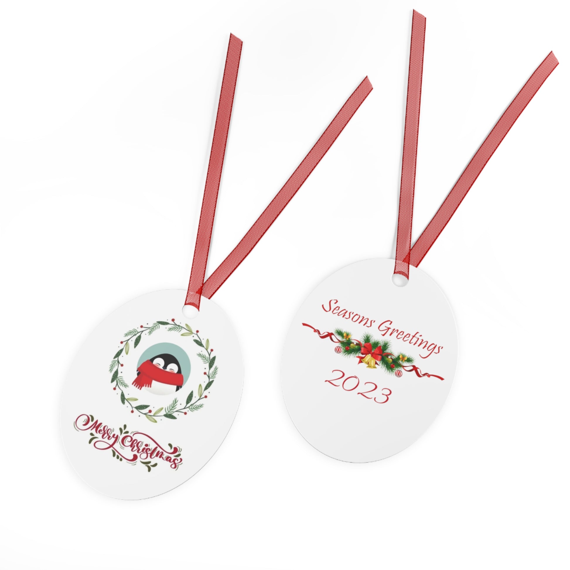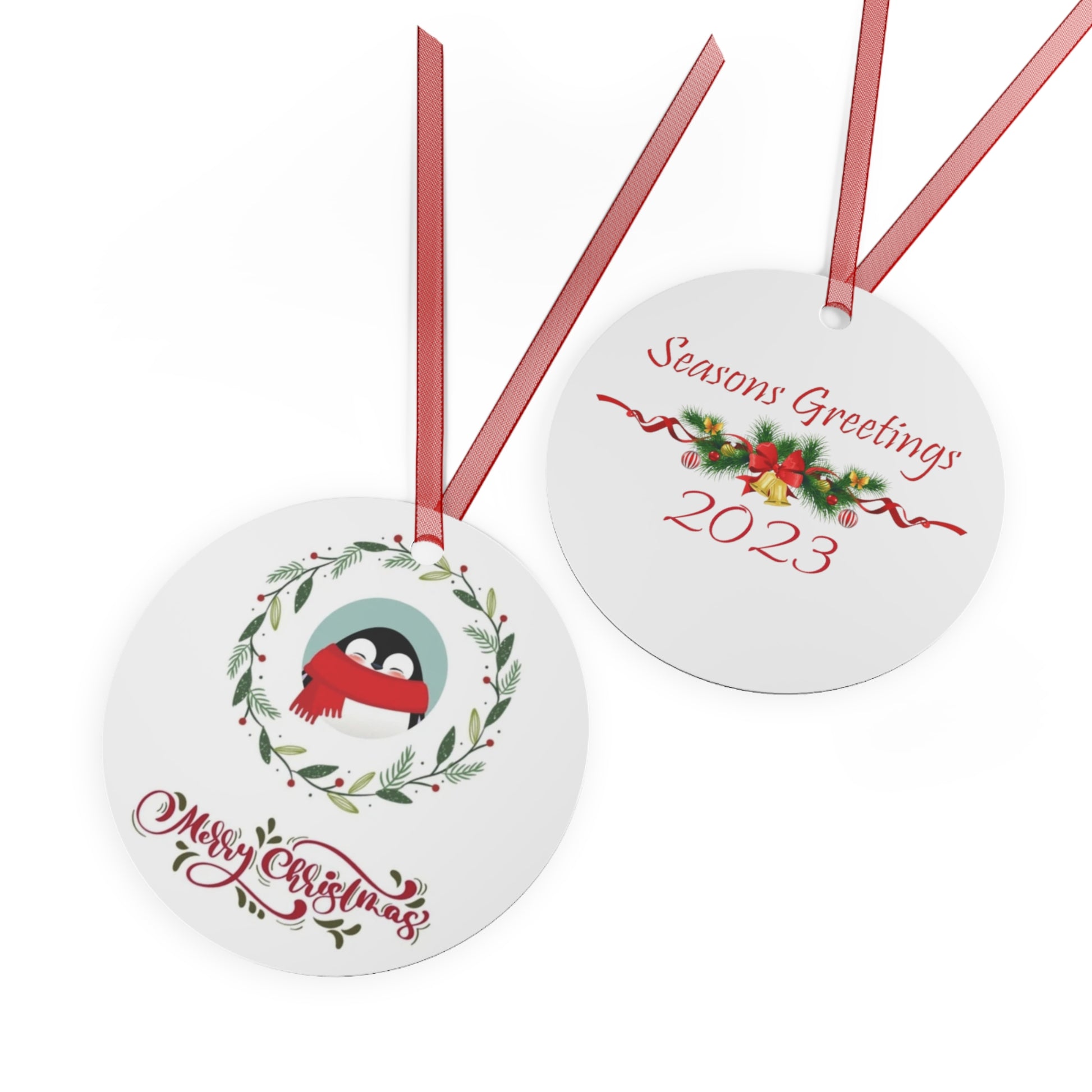 Metal Christmas tree ornaments are durable and will bring holiday cheer for years to come. The surface is scratch and chip-resistant, so they can be stored together in the famous Christmas decoration box. Choose from round, and oval. Note that there's one ornament per pack, and it already comes with a separate red ribbon for hanging. .: White aluminum base with a glossy finish .: Available in, Round and Oval .: Scratch and chip resistant surface .: Print on both sides .: Each ornament comes with a separate red ribbon for hanging .: NB! Each pack contains a single ornament