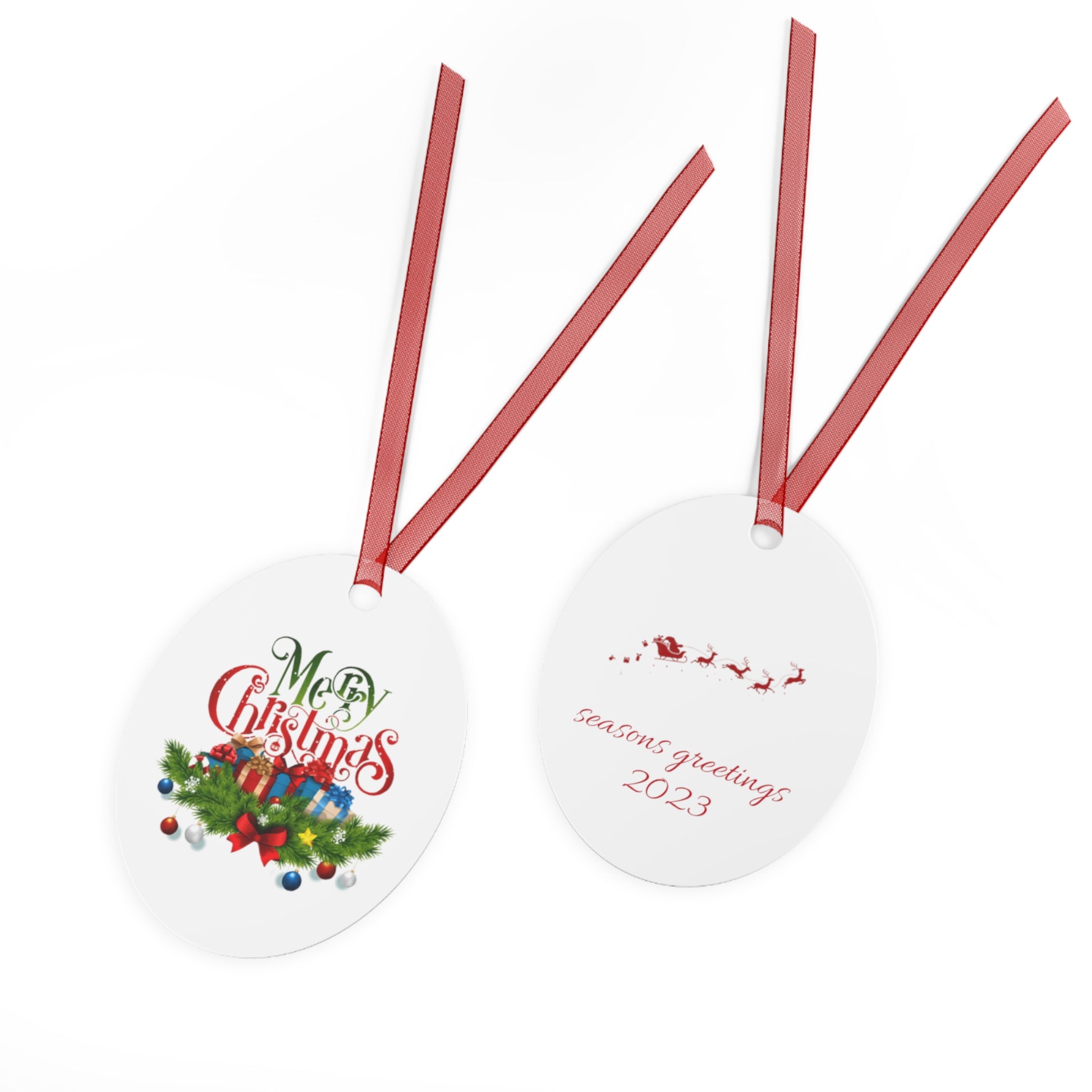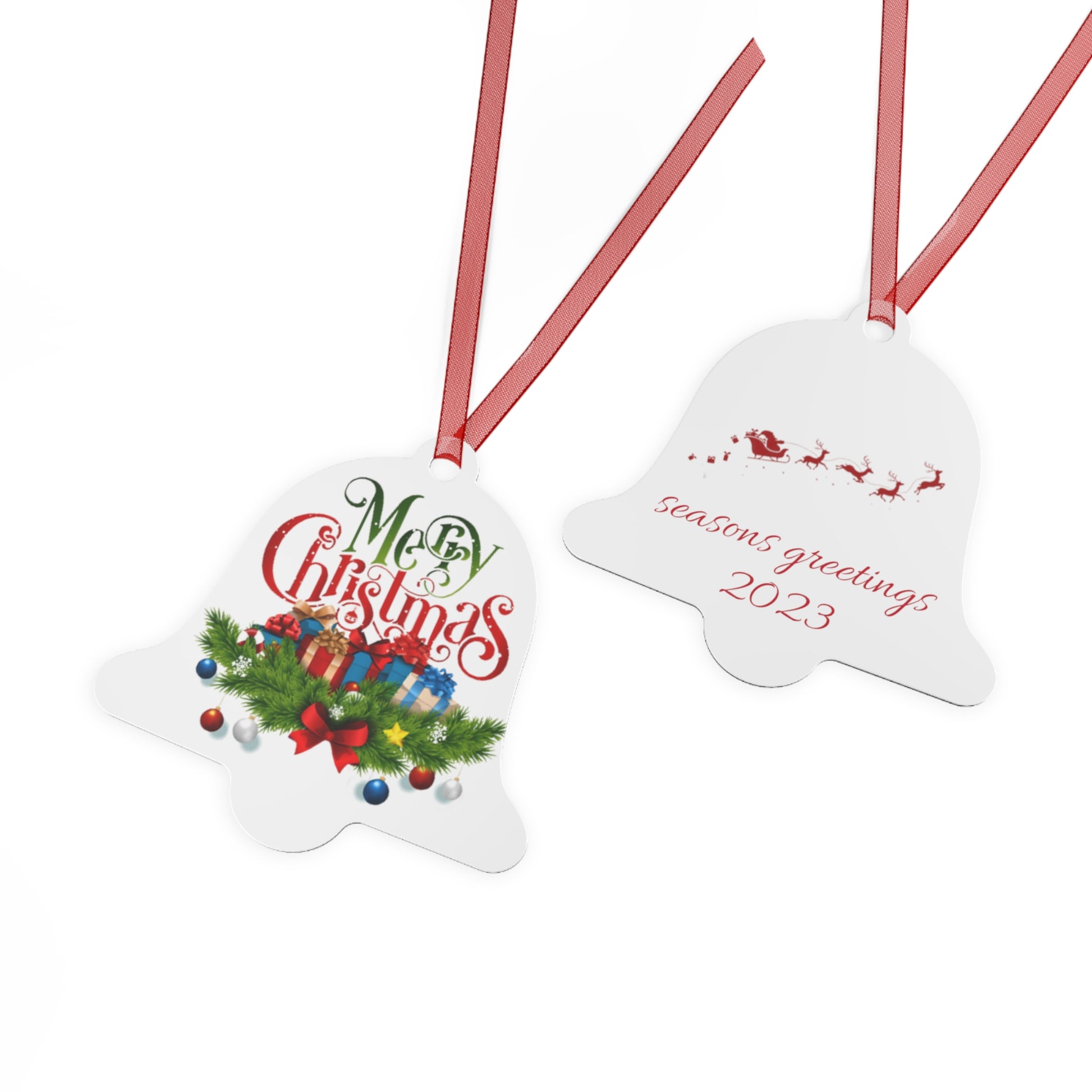 Metal Christmas tree ornaments are durable and will bring holiday cheer for years to come. The surface is scratch and chip-resistant, so they can be stored together in the famous Christmas decoration box. Choose any or all of these four shapes – bell, round, and oval. Note that there's one ornament per pack, and it already comes with a separate red ribbon for hanging. .: White aluminum base with a glossy finish .: Available in 3 shapes - Bell, Round and Oval .: Scratch and chip resistant surface .: Print on both sides .: Each ornament comes with a separate red ribbon for hanging .: NB! Each pack contains a single ornament