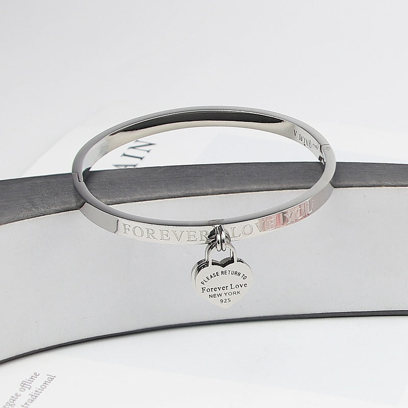 Classic Stainless Steel Gold Colour Bracelets & Bangles Wholesale Jewelry Fine Double Peach Heart Love Bracelets Female