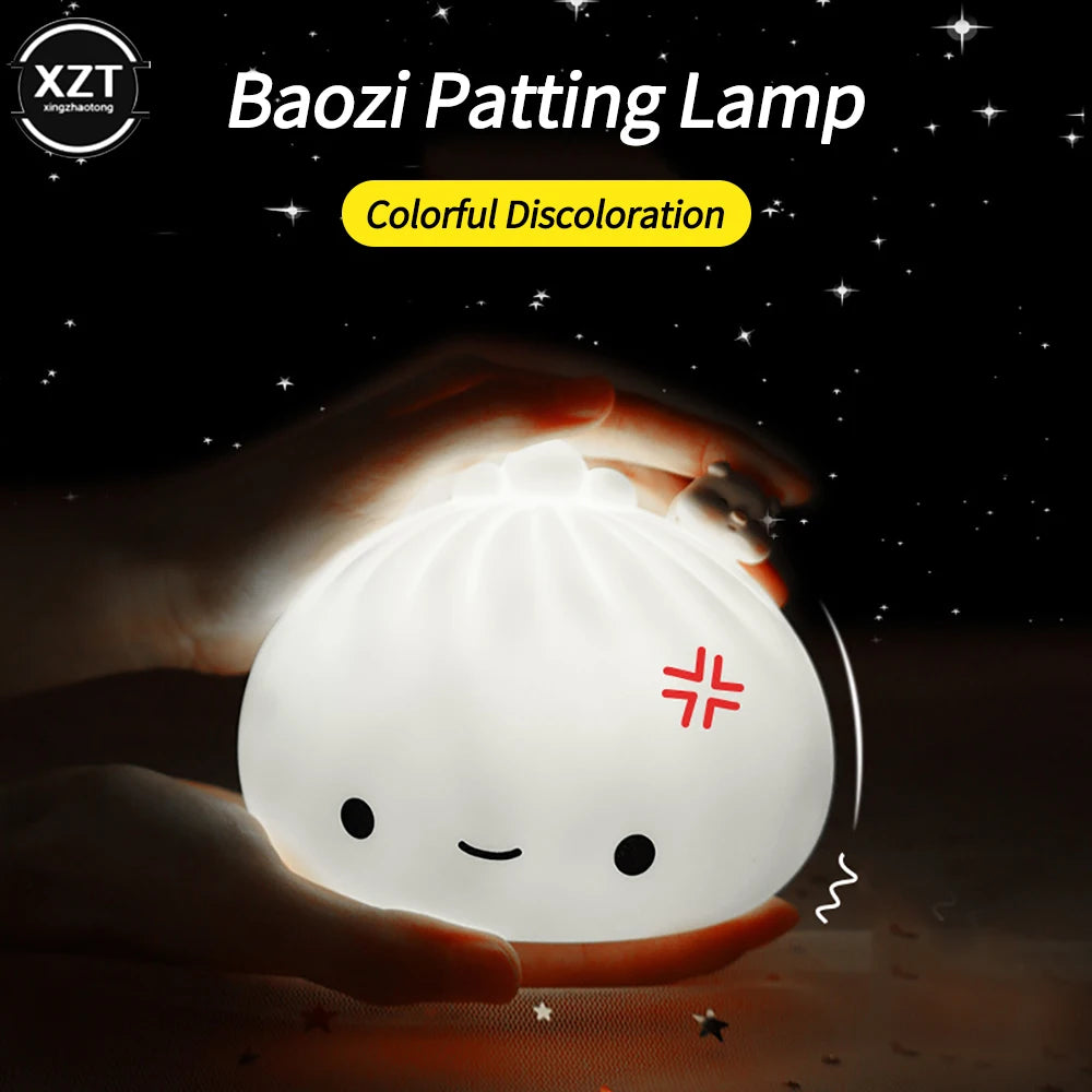 Cute LED Night Light Bun Shape Colorful Color Changeable Soft Silicone Night Lamp Bedroom Bedside Lamp for Holiday Gifts