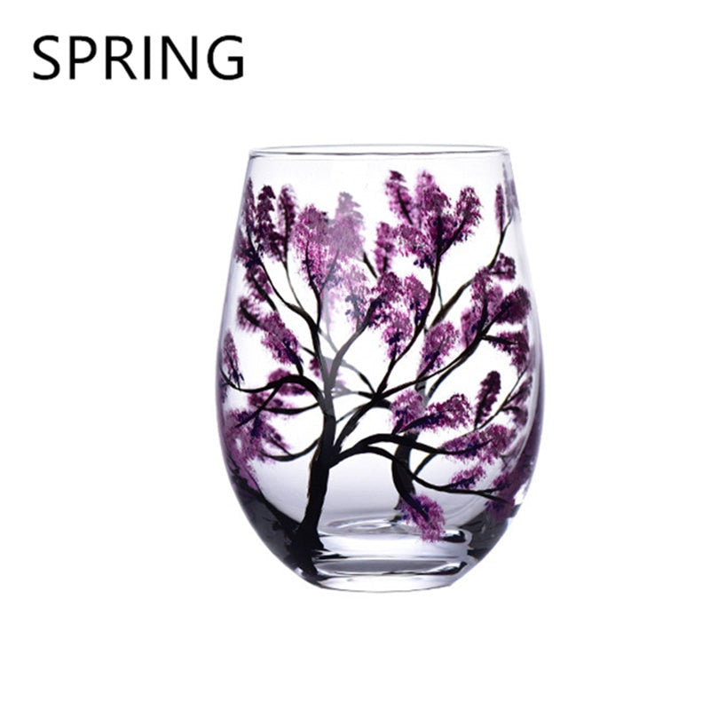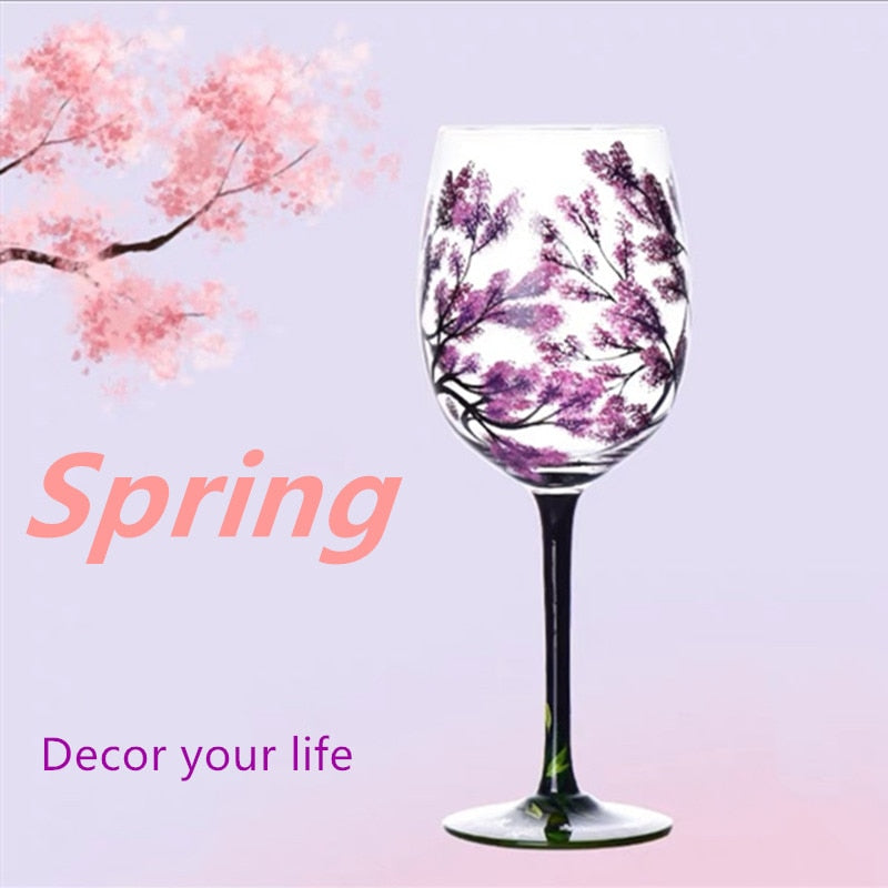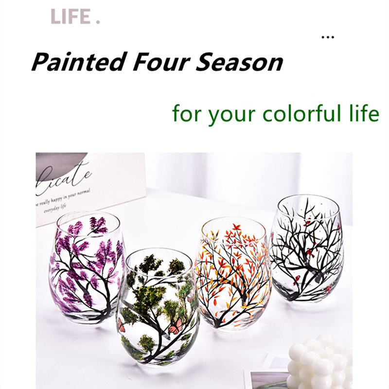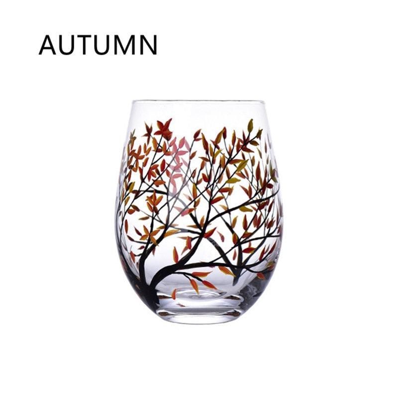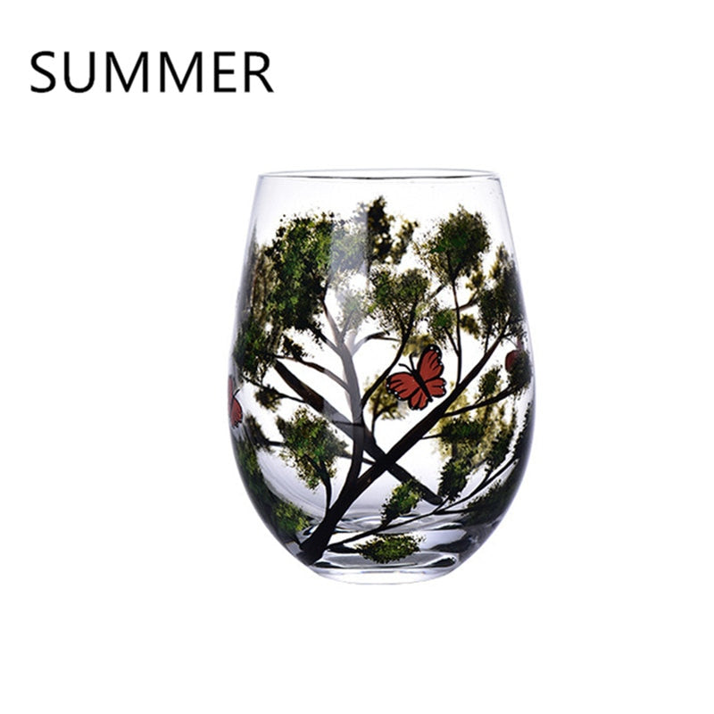 Four Seasons Trees Wine Glasses Goblet Creative Printed Round Glass Cup For Wine Beer Cocktail Large Capacity Glass Cup Gift