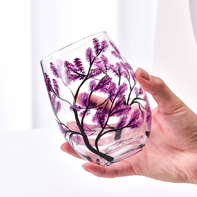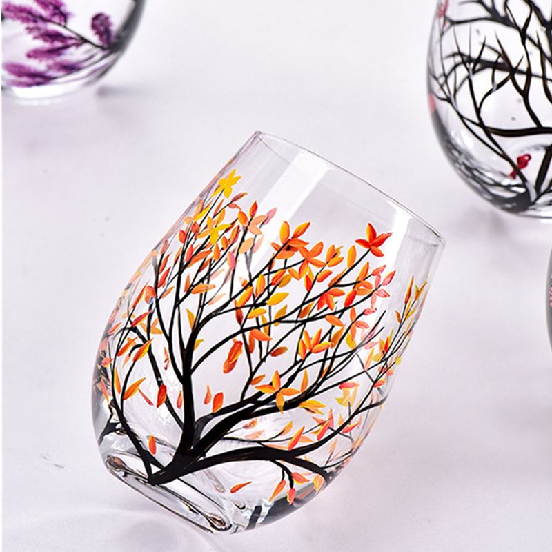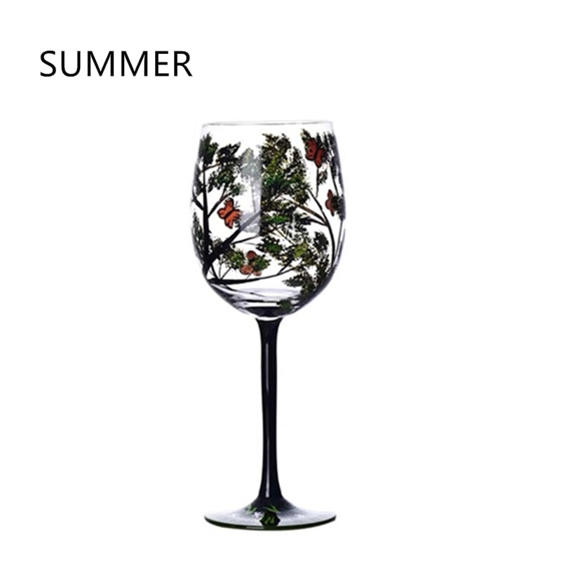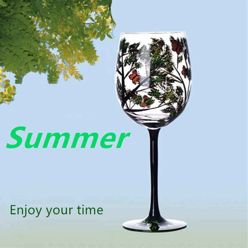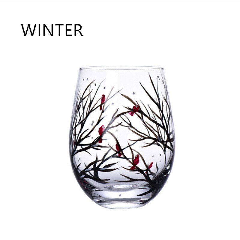 Four Seasons Trees Wine Glasses Goblet Creative Printed Round Glass Cup For Wine Beer Cocktail Large Capacity Glass Cup Gift