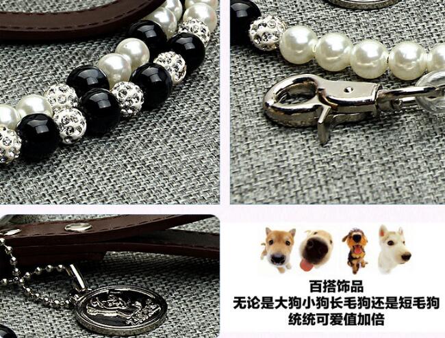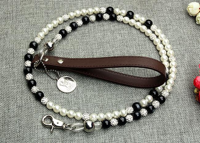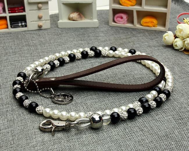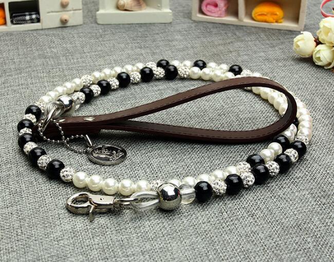 High-grade luxury black white pearl diamond ball leash for pet dog cat doggy fashion lead products puppy accessories 1pcs