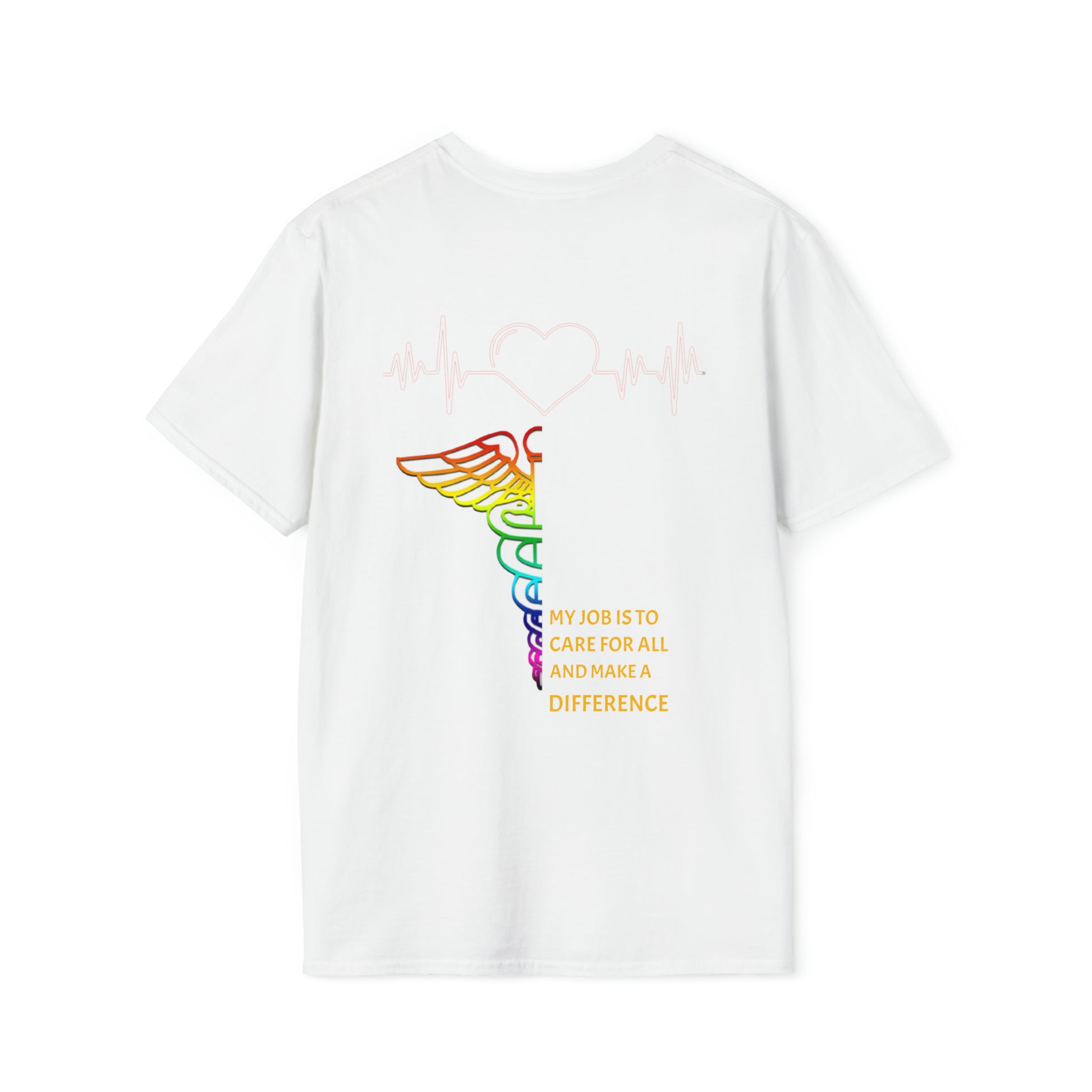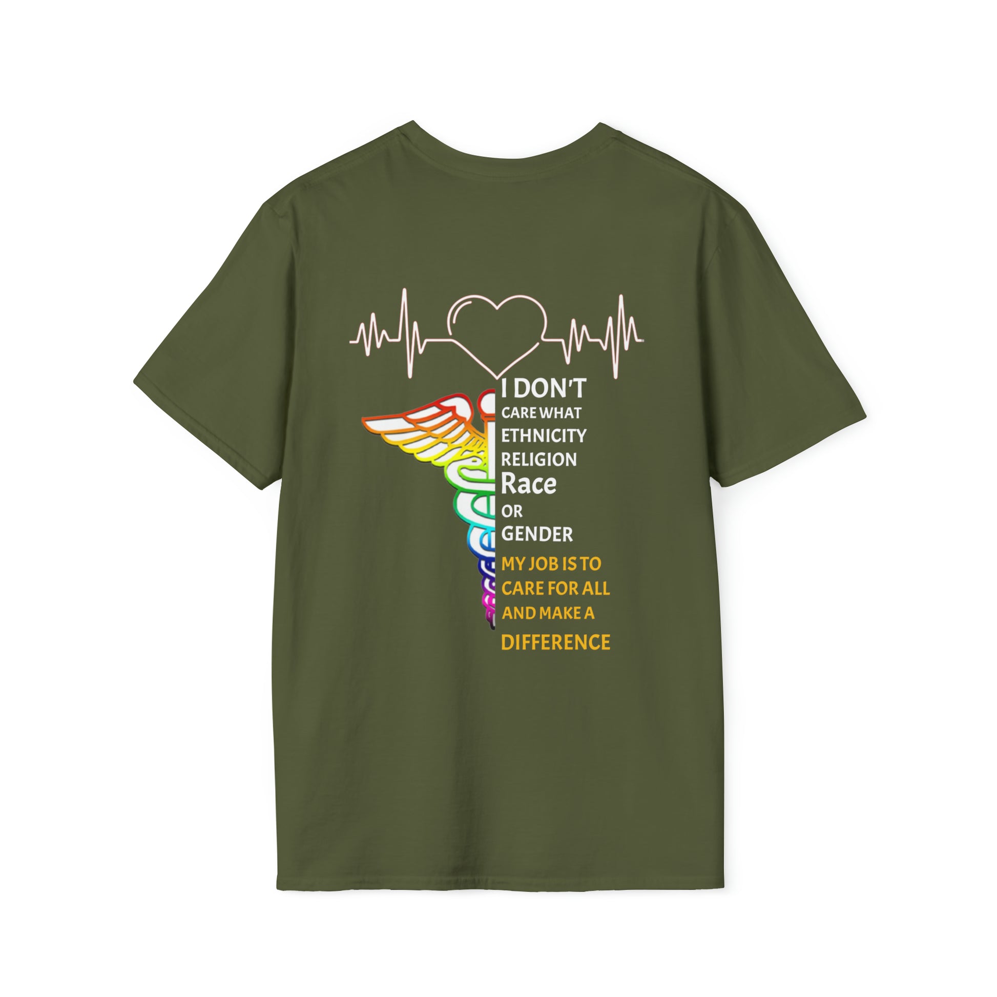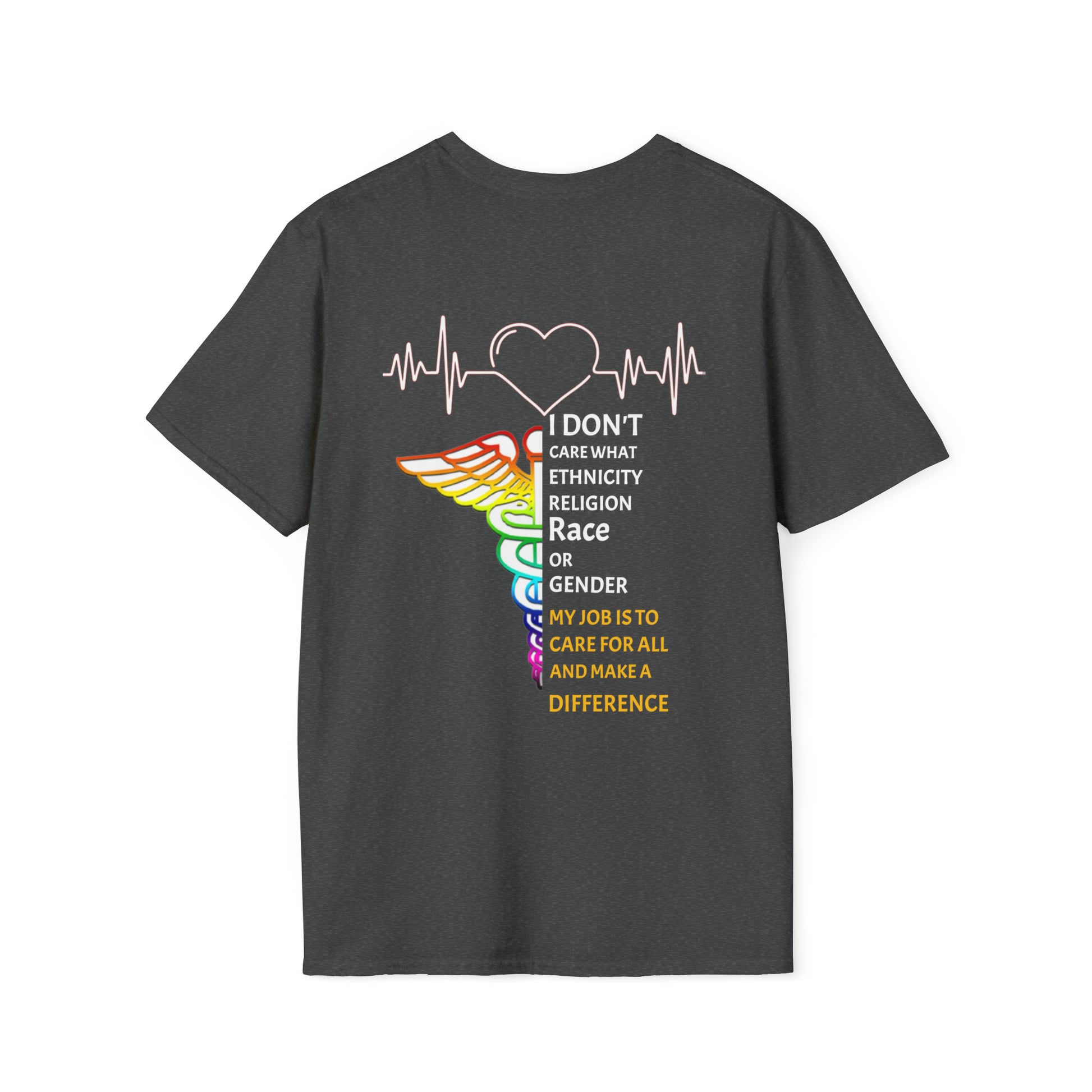 The unisex soft-style t-shirt puts a new spin on casual comfort. Made from very soft materials, this tee is 100% cotton for solid colors. Heather colors and sports grey include polyester. The shoulders have twill tape for improved durability. There are no side seams. The collar is made with ribbed knitting to prevent curling damage.