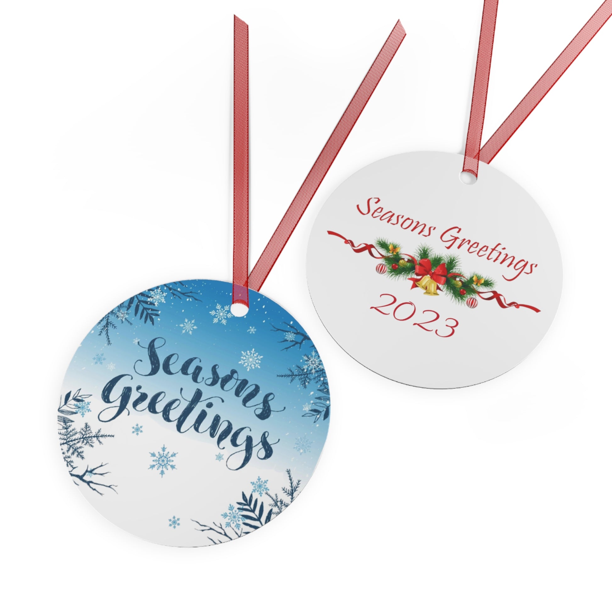 Metal Christmas tree ornaments are durable and will bring holiday cheer for years to come. The surface is scratch and chip-resistant, so they can be stored together in the famous Christmas decoration box. Note that there's one ornament per pack, and it already comes with a separate red ribbon for hanging. .: White aluminum base with a glossy finish .: Available in Round .: Scratch and chip resistant surface .: Print on both sides .: Each ornament comes with a separate red ribbon for hanging .: NB! Each pack contains a single ornament