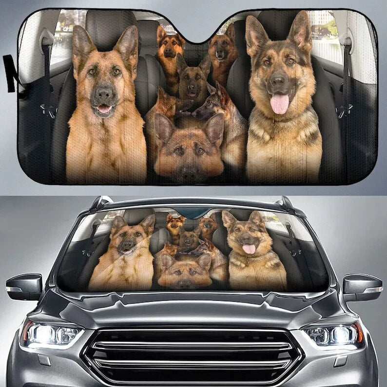 Pug Car Sun Shade, Pug Windshield, Dogs Family Sunshade, Dogs Car Accessories, Car Decoration, Pug Lovers Car Sun Shade, Gift Fo