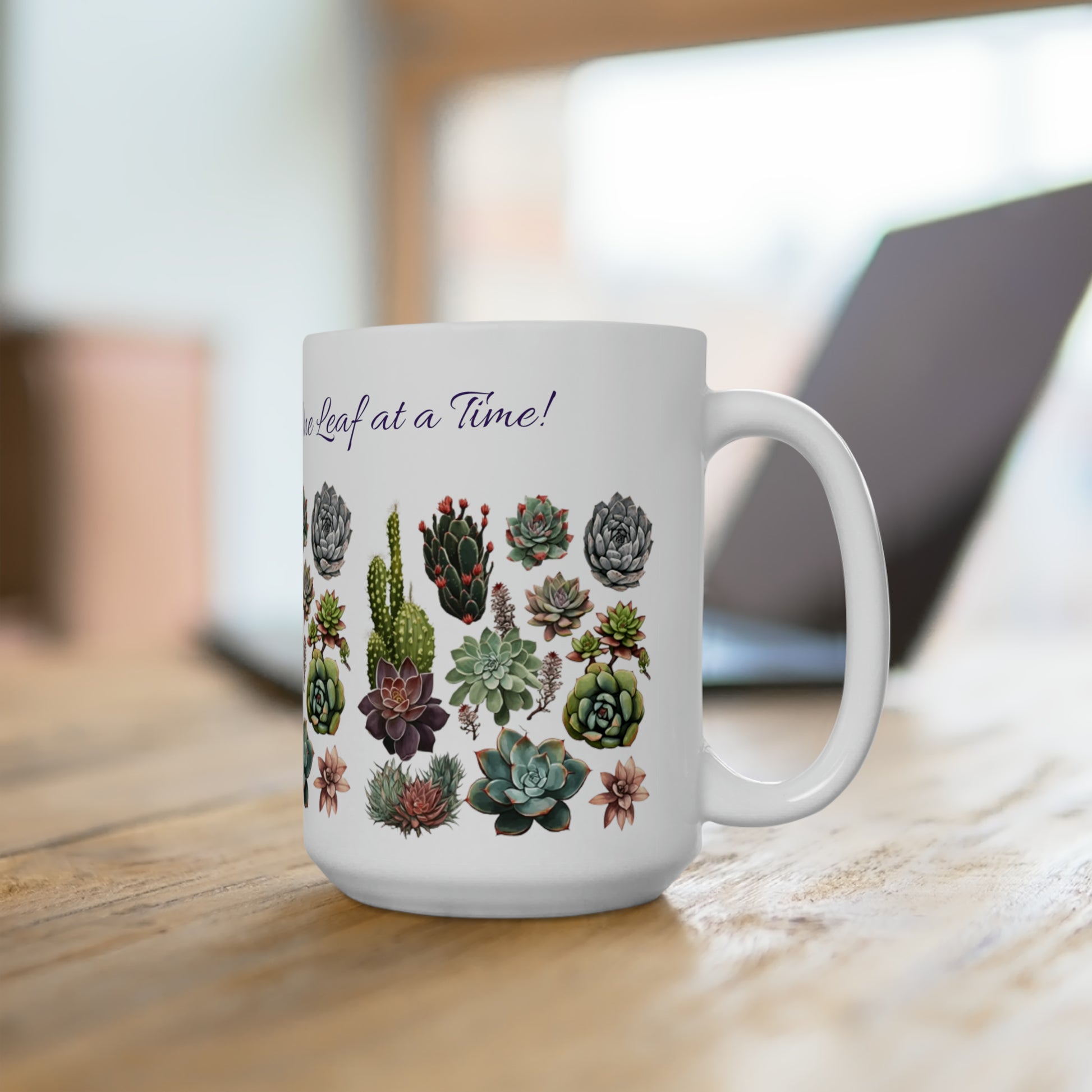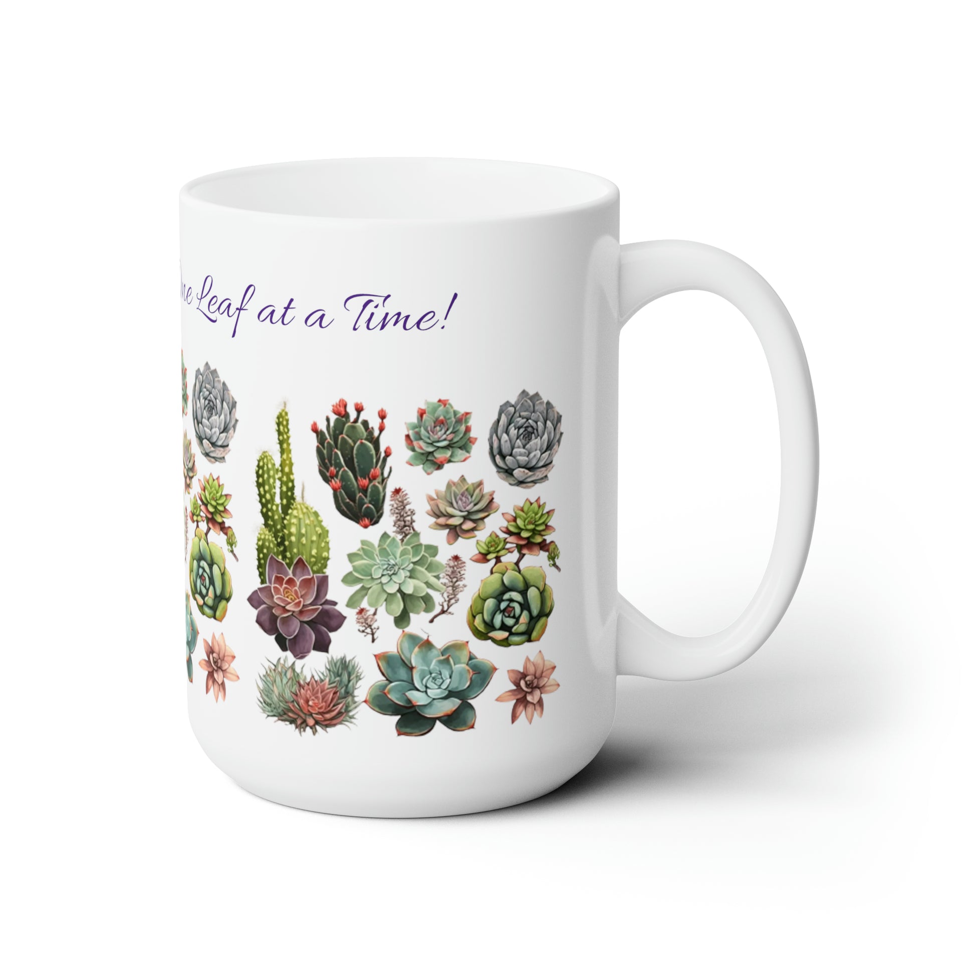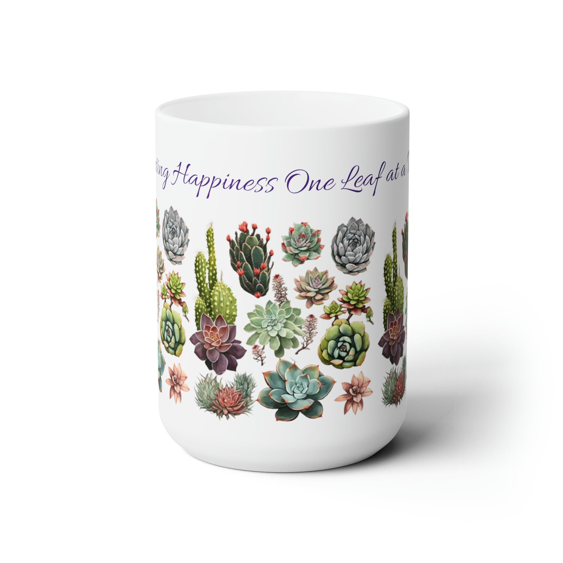 Large 15 ounce custom mug. It’s microwave-safe, and can be washed in dishwasher or easily cleaned with a mild detergent.