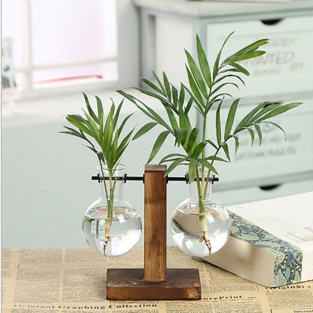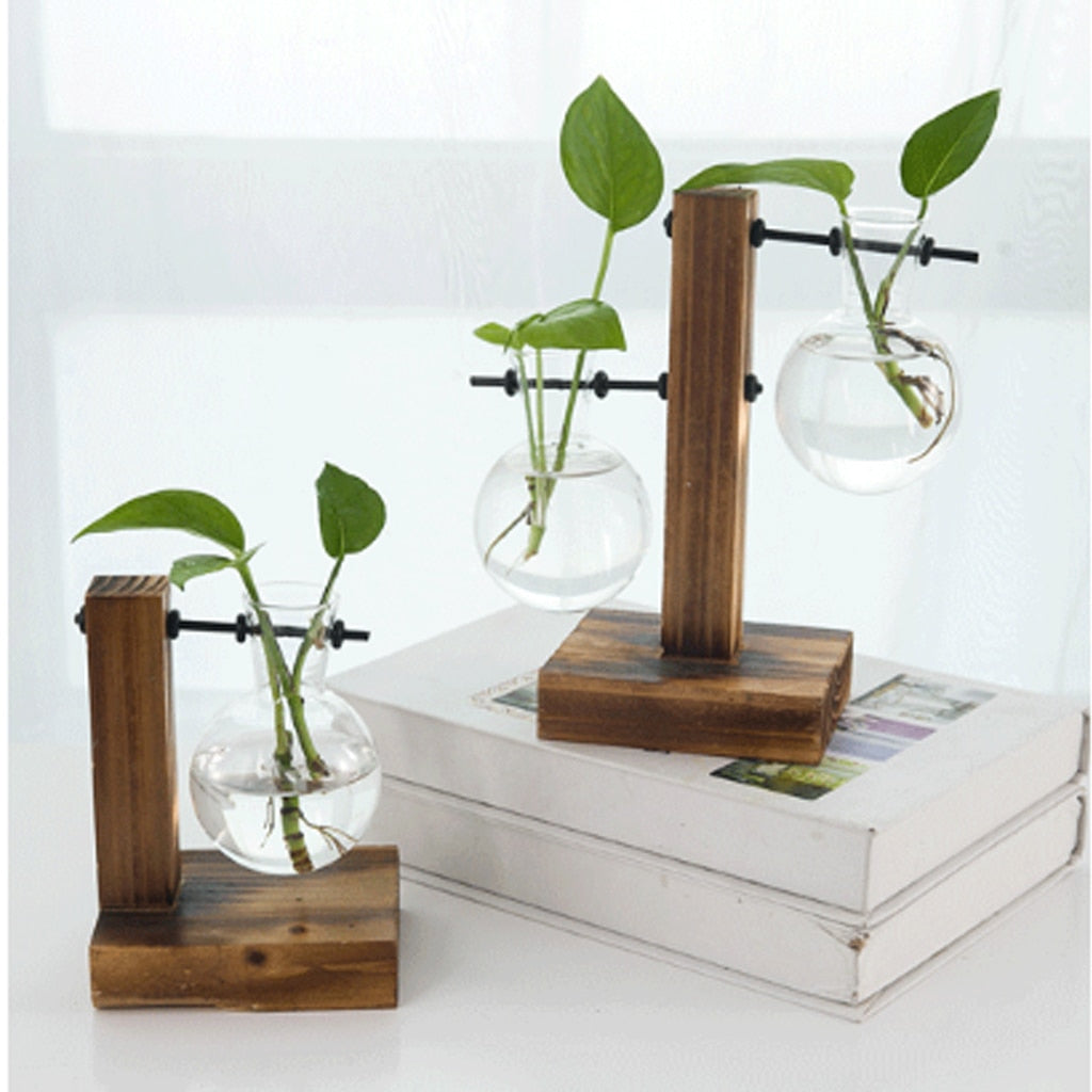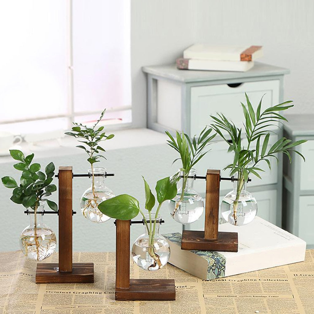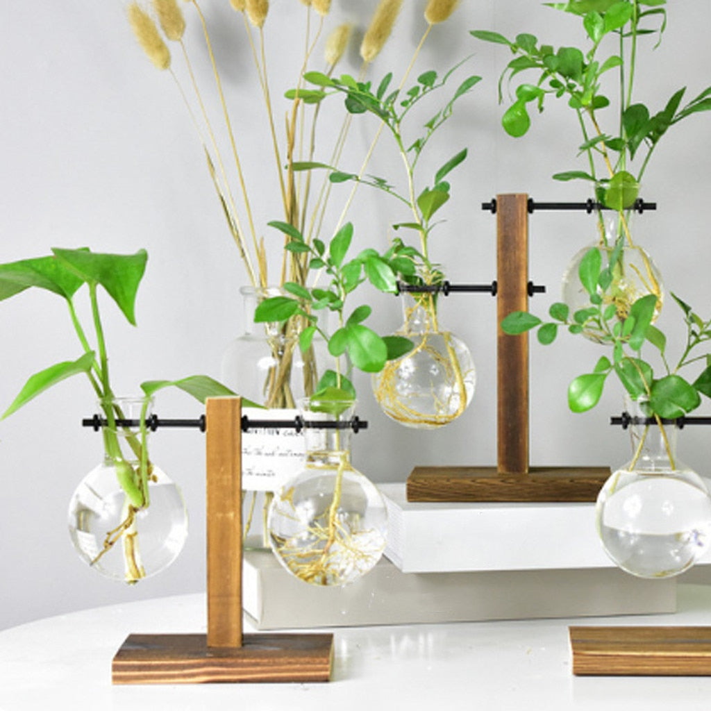 Terrarium Planter Bulb Glass Vase Water Planting Propagation Stations Hydroponics Plants With Wooden Stand Garden Wedding Decor